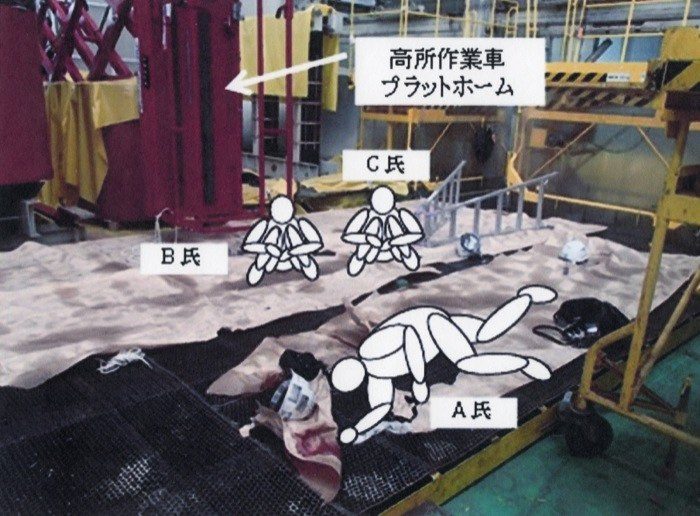 現場写真が添えられており、状況がよくわかる。高所から複数が転落するのは何も工業都市の日立市に限ったことではない。どんな小さな村でも起こりうることである。
