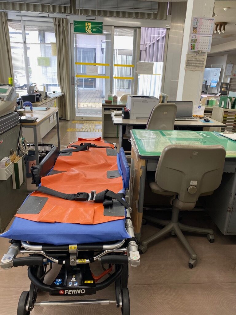 市内事業所にて卒倒し、心肺停止との指令で出動した。
