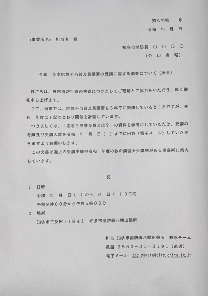 3年ごとに市内事業所に案内文(009)を送り普及員講習を開催し新規普及員の養成を行っている。