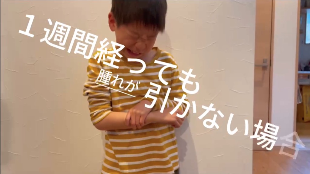単なる打撲と思っていても、1週間経って腫れや痛みが軽減しない場合には骨折の可能性がありますので病院を受診させましょう。