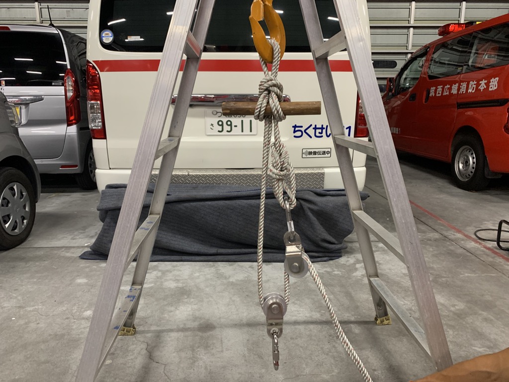 当広域消防本部管轄内で、ごみ処理施設のピット内へ要救助者が落下した事案があり、高取支点が取れない場所での救出活動をする上で、容易に高取支点を確保する方法はないかという意見がありました。