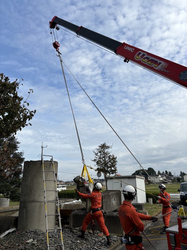 要救助者を地面から約1メートルの位置まで救出し隊員に確保させ救出完了。